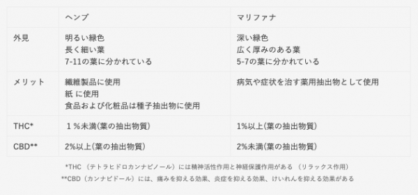 タイで人気の大麻(カンナビス)は、ヘンプ(Cannabis sativa L.subsp. sativa)とマリファナ(Cannabis sativa L.subsp. indica)です。この2つの植物は同じ科であっても、その種が異なるため、物理的な特徴や含有量に違いがあります。